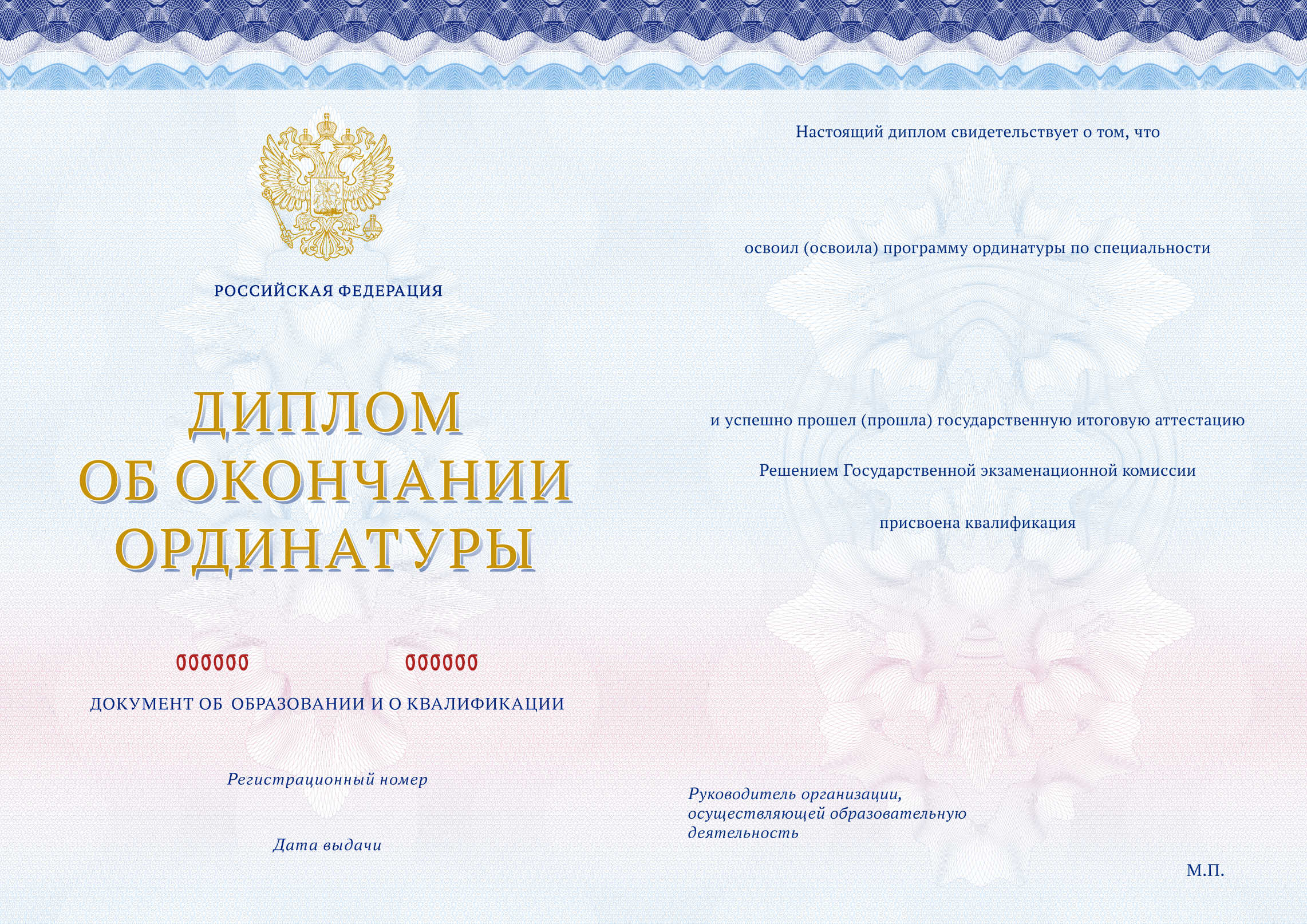 Обложка бланка диплома об окончании ординатуры (твердая) |
